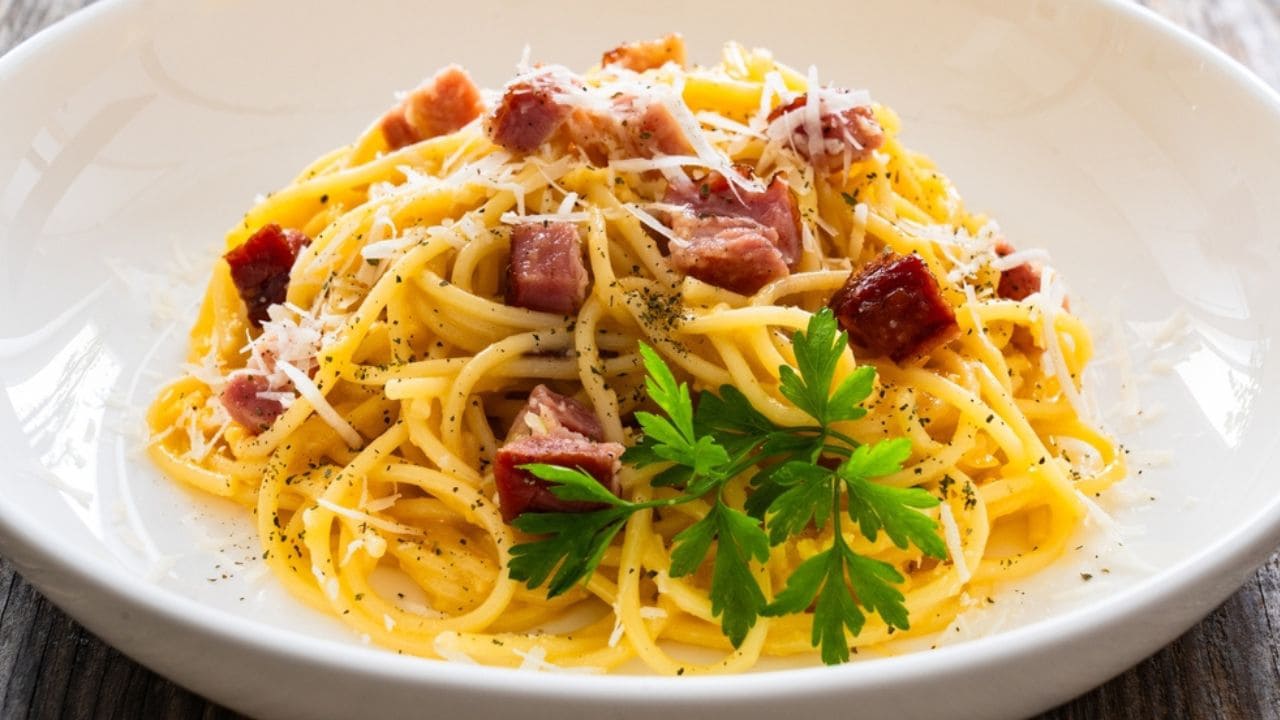 Coloque o bacon, ainda quente, sobre o macarrão e sirva.